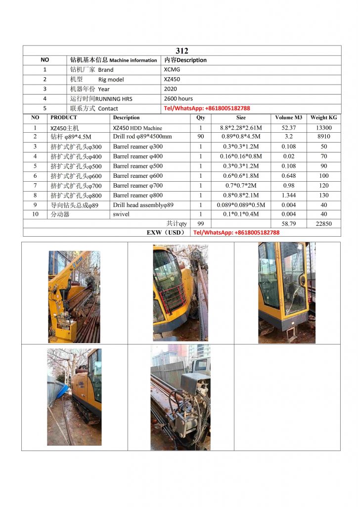 NO.312 USED XCMG XZ450 hdd machine